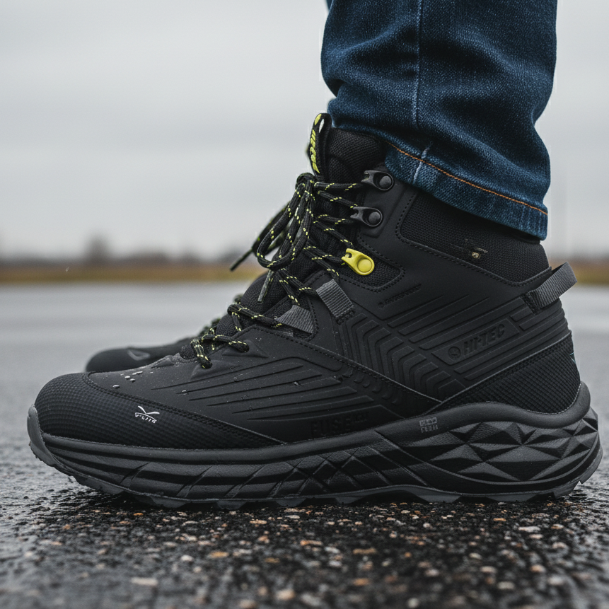 Découvrez la nouvelle botte outdoor HI-TEC, conçue pour offrir performance, confort et protection dans les conditions les plus exigeantes. Avec son design robuste entièrement noir et ses détails jaunes signature, ce modèle associe technologie avancée et style moderne. Fabriquée avec un dessus résistant et imperméable, elle assure une protection optimale contre la pluie, la neige et l’humidité. Sa semelle innovante GEO FOAM garantit une absorption des chocs exceptionnelle et un confort prolongé durant vos randonnées ou déplacements quotidiens. La technologie V-Lite, quant à elle, permet de réduire le poids de la chaussure tout en conservant une excellente stabilité et durabilité. Grâce à sa semelle extérieure à traction renforcée, la botte offre une adhérence parfaite sur terrains glissants ou irréguliers. Les lacets bicolores et les œillets renforcés assurent un maintien fiable et précis du pied. Parfaite pour l’hiver, la randonnée, le travail en extérieur ou les activités urbaines par mauvais temps, cette chaussure HI-TEC allie légèreté, protection et longévité.